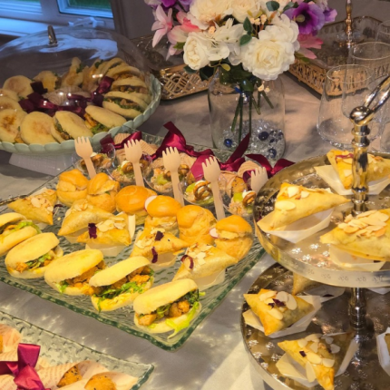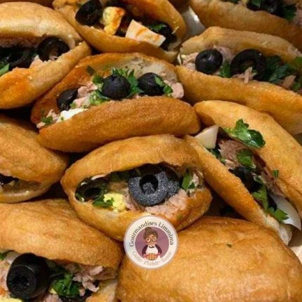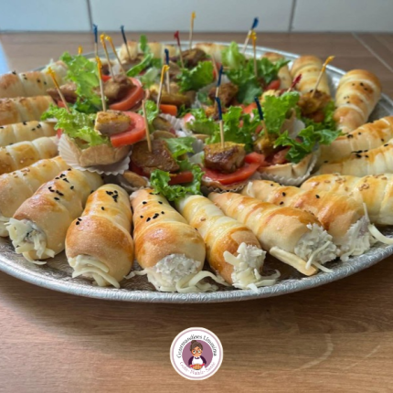 Vous avez 5 choix de salés différents e : mini pizza, mini fricassée, mini batbout, mini cornet et zouza salée … parfaits pour vos pauses et réceptions.