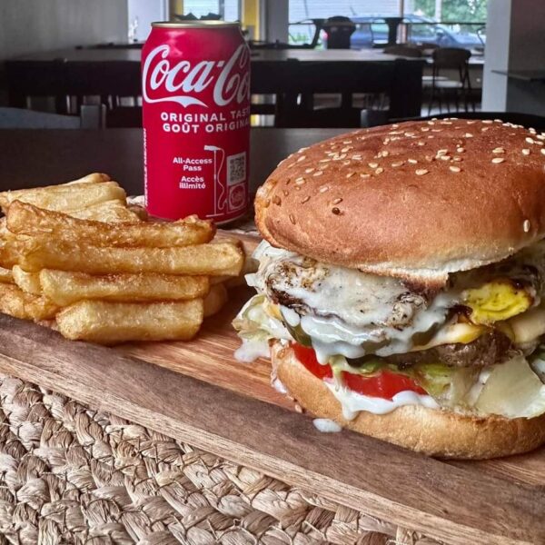 Pour le burger Ramos : ajout dun oeuf, moutarde, chedar, Mozzarella frites et boisson