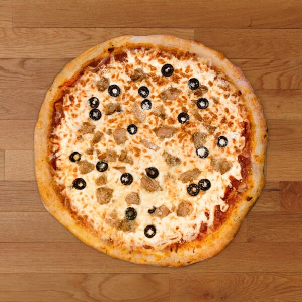 Pizza 12", fraîchement cuite et préparée, aux ingrédients suivants: