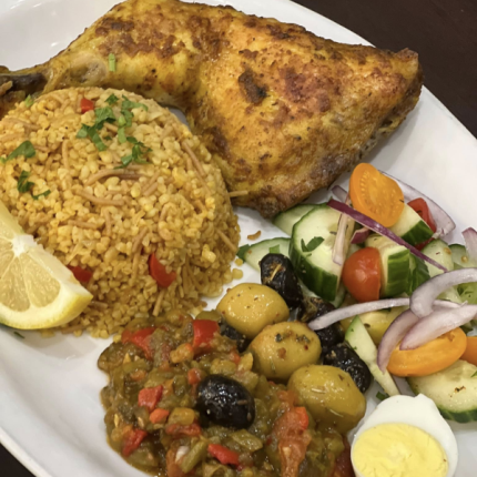 Poulet (Entier, 1/2, 1/4, Cuisse) rôti à la marocain avec garnitures