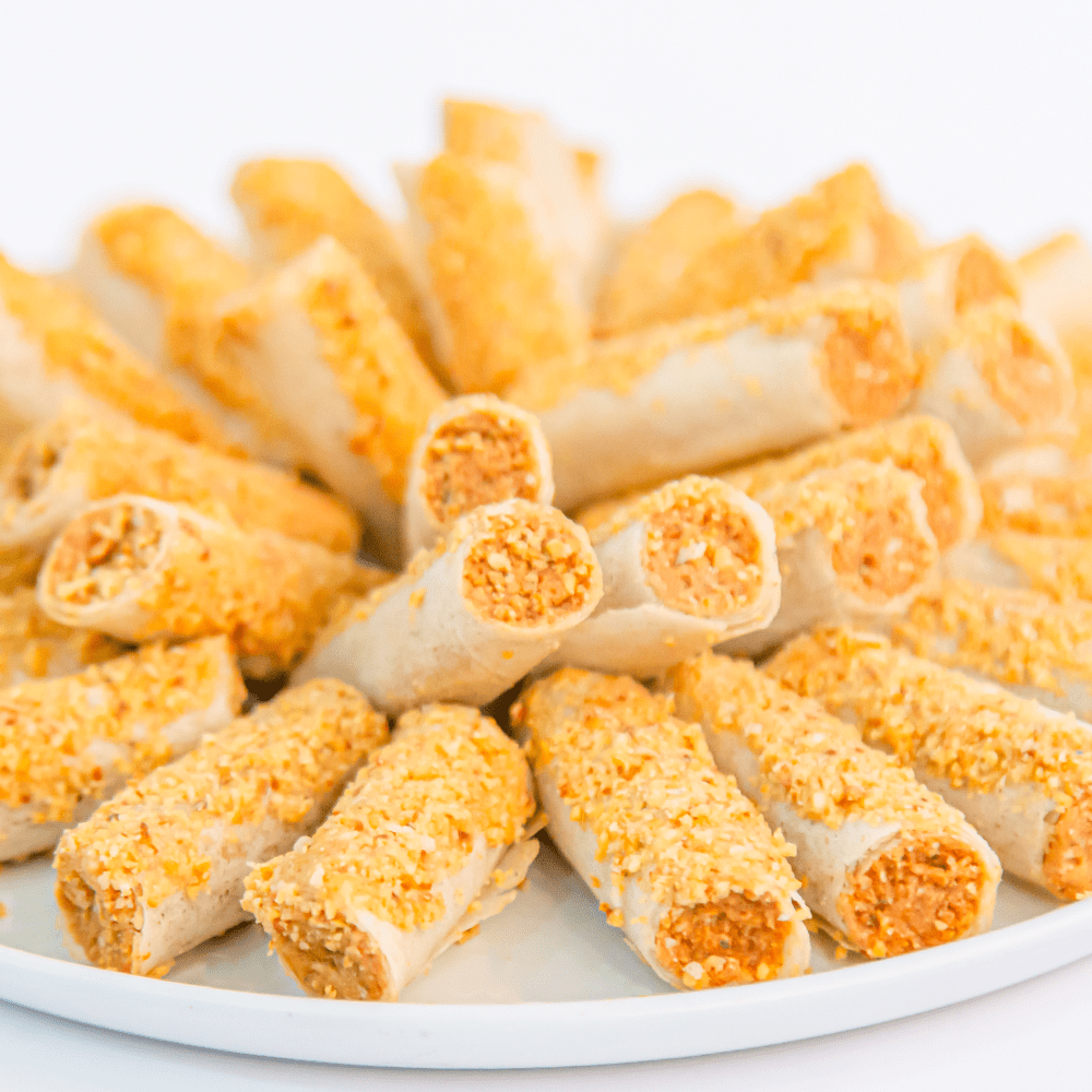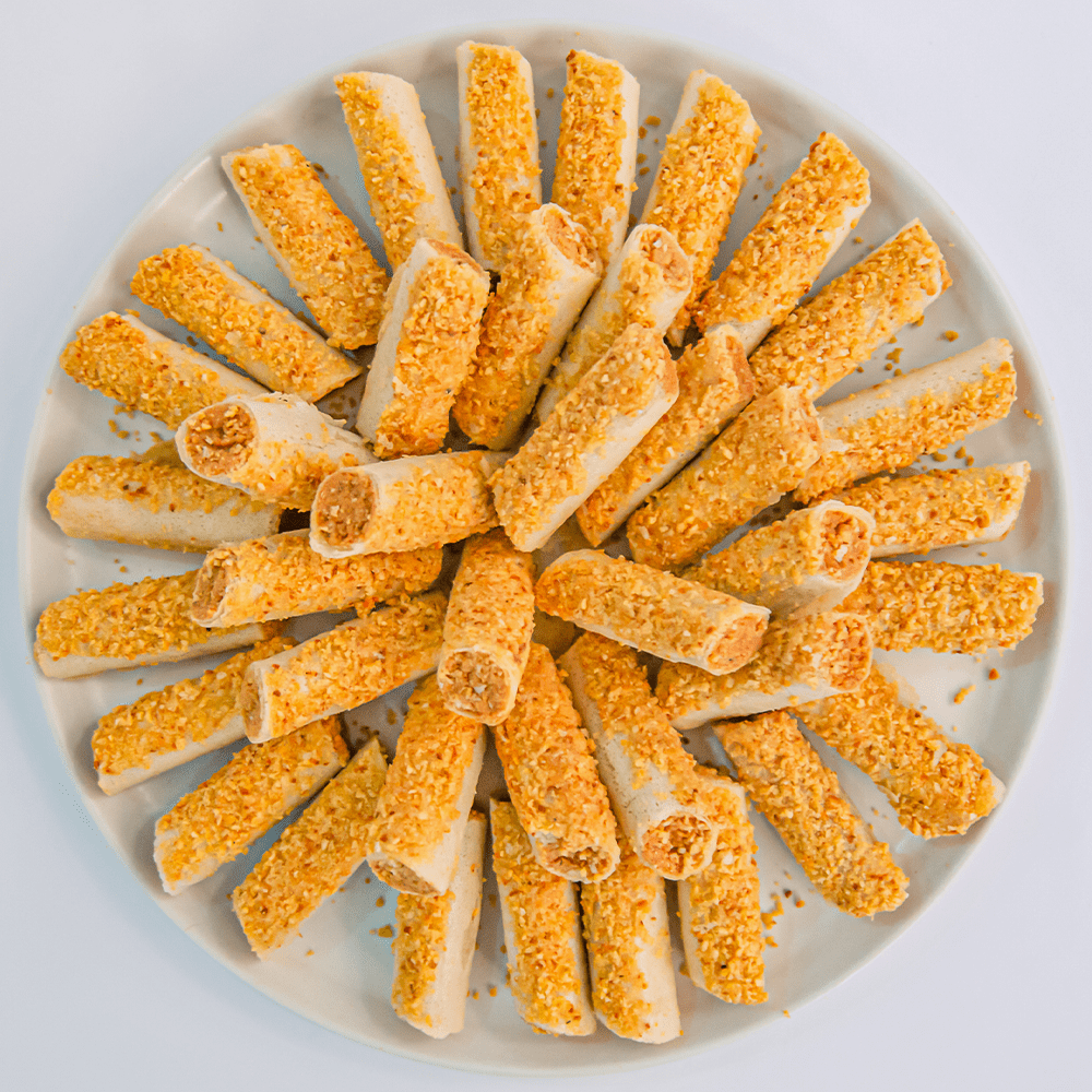 Une fine feuille de brick en cigare fourrée par une délicieuse pâte d’amande et décorée par une touche de poudre de noisette. Ingrédients Amande, Feuille de brik, Sucre, Noisette, Sirop de glucose, Oeuf, Arôme de rose