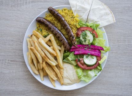 -Assiette Garnie de salade, Tomate, Oignon, Sauce blanche au yogourt, menthe et vous avez les choix entre: