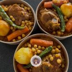 Un couscous traditionnel à l’agneau et aux légumes, mijoté lentement pour révéler toute la richesse des saveurs, tendre et parfumé, servi avec des légumes frais et colorés pour un repas généreux et authentique.