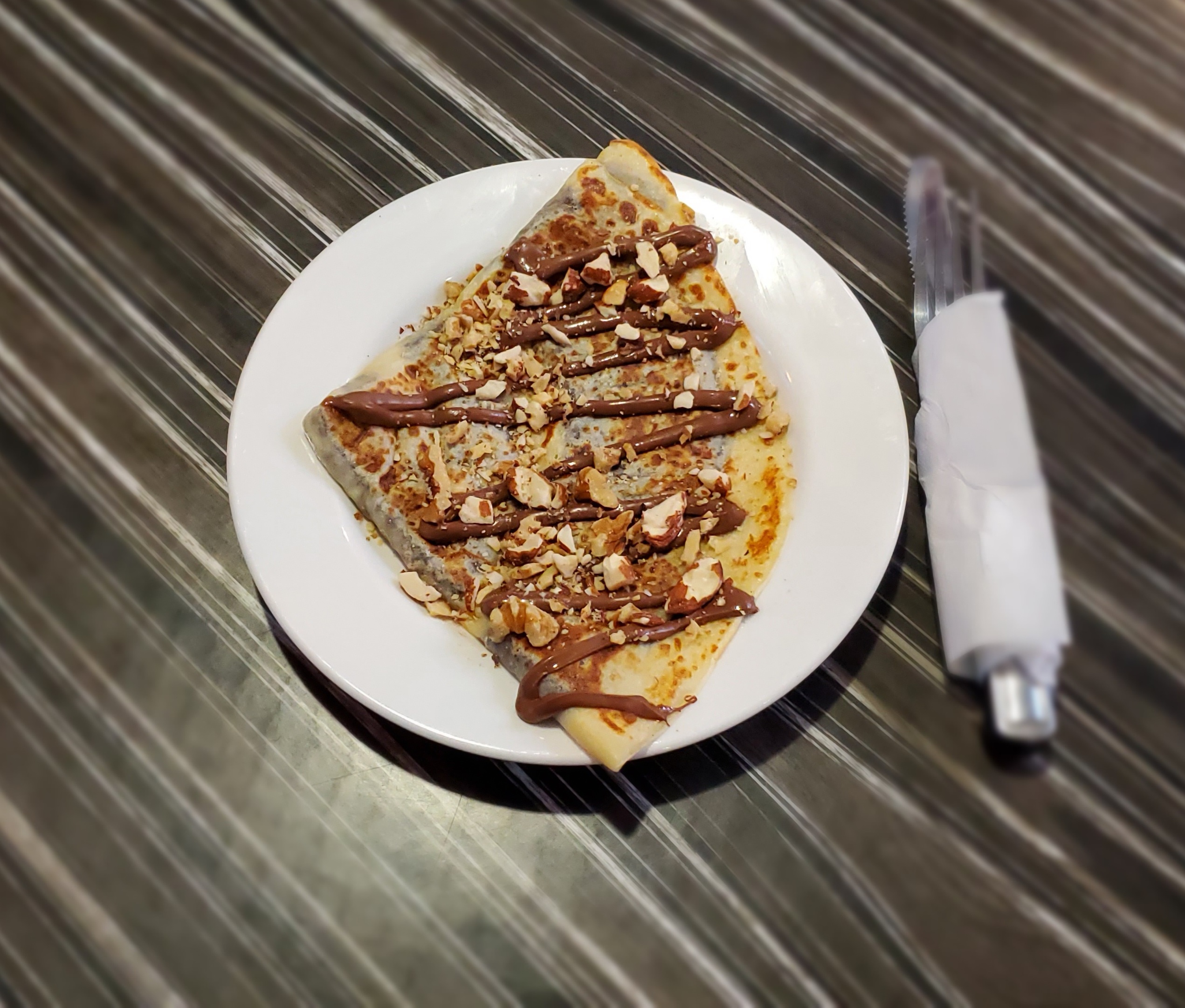 Une délicieuse crêpe sucrée fourrée avec de chocolat et de banane. Un bon dessert pour bien débuter la journée!