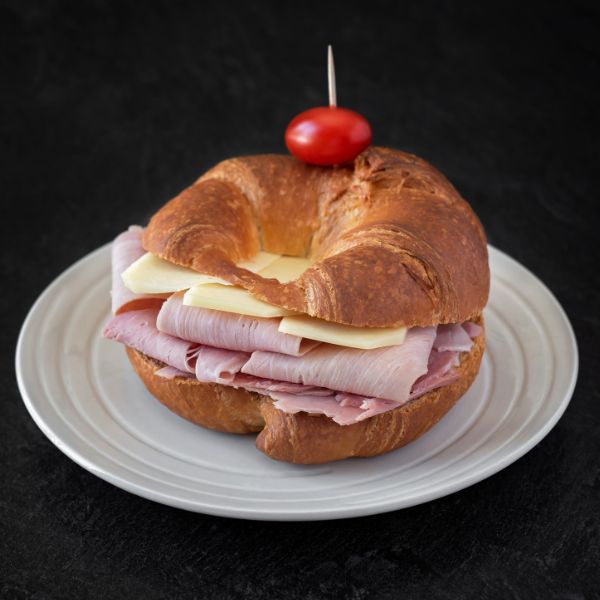Un croissant feuilleté maison garni de jambon fumé et de fromage suisse fondant. Une combinaison savoureuse pour une collation gourmande