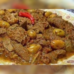 Un plat marocain emblématique, mijoté lentement avec des épices chaudes, des olives et de tendres morceaux de tripes de mouton — une véritable explosion de saveurs authentiques.
