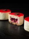 Génoise chocolat, mousse chocolat noir, mousse chocolat blanc et mousse chocolat au lait.