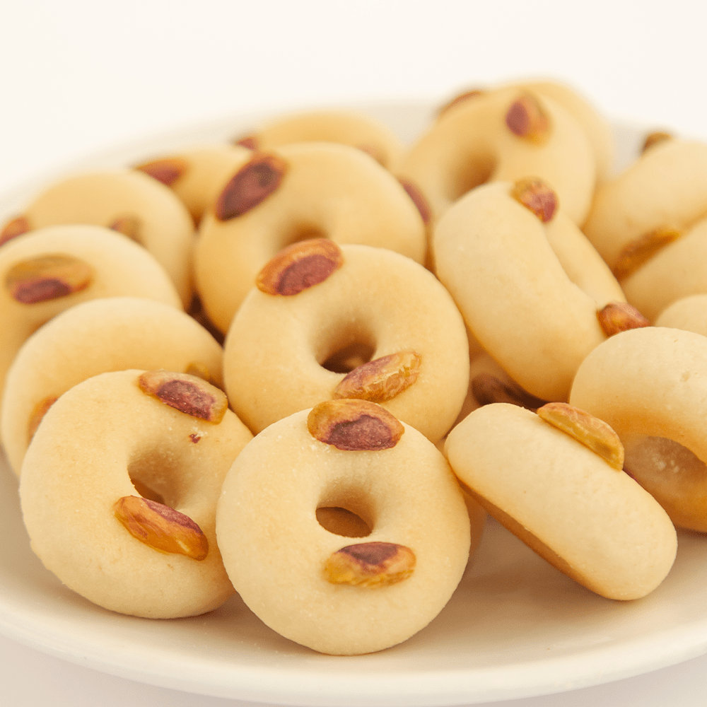 Une pâtisserie très classique et bien reconnaissable à sa forme d’anneau bien décoré de deux pistaches sur les côtés
