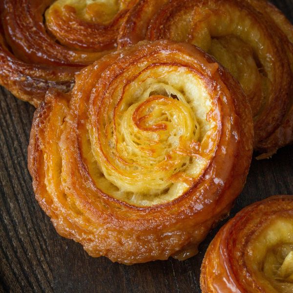 Le kouign-amann est une pâtisserie boulangère d’origine bretonne. Kouign signifiant «gâteau» et amann, «beurre». Le mélange de beurre et de sucre caramélise le feuilletage à la cuisson, ce qui crée une texture fondante à l’intérieur et croustillante à l’extérieur.