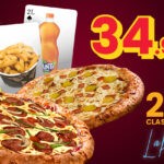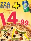 Deux larges pizzas CLASSIQUE de taille 14″ avec 1 boisson 2L et une large frite