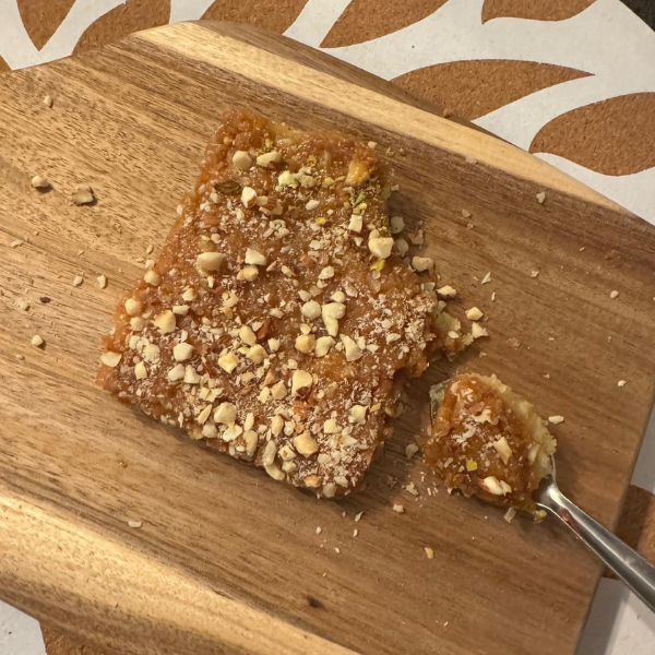 Carré fondant à la semoule, parsemé de fruits secs et riche en saveurs traditionnelles.