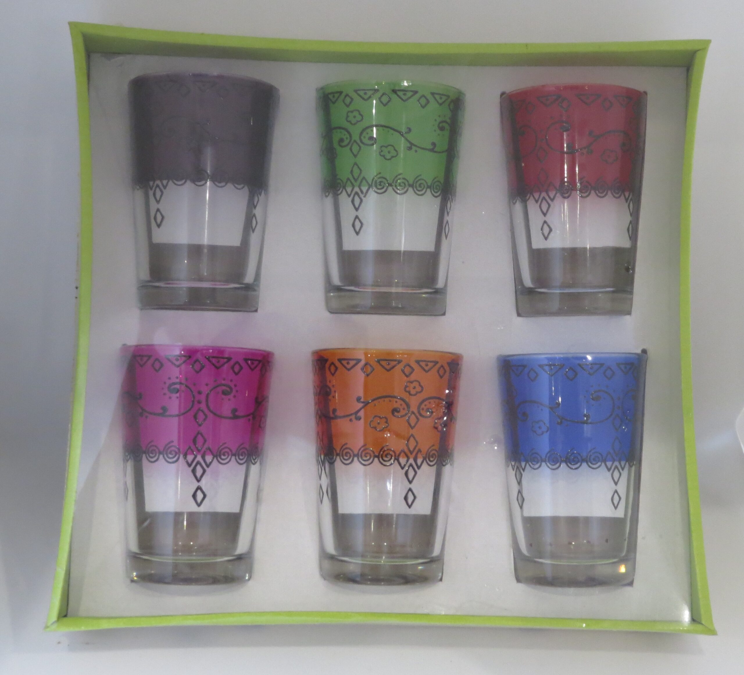 Ensemble de 6 verres multicolores, fait main de qualité supérieure pour servir le thė à vos proches.
