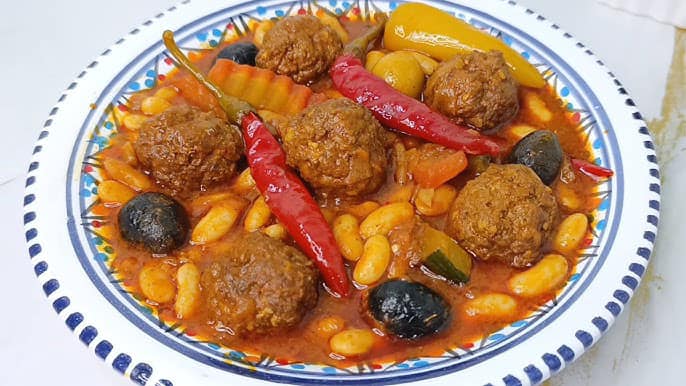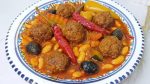 Ragoût d’haricots et boulettes de viande, accompagné de tajine.