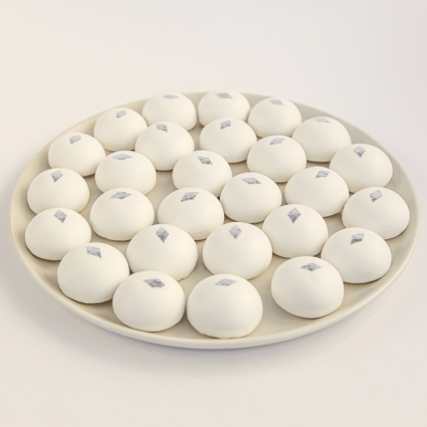 Une pâtisserie Tunisienne idéale pour les naissances et fêtes. C’est une pâte d’amande enrobée dans une meringue en blanche neige.(28pcs)