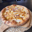 Pizza tout juste sortie du four, agrémentée des ingrédients suivants :