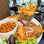 Plat escalope pané servi avec salade frite pâte et tajine tunisien au poulet