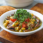 Plat Foul ( 1 personne ) richesse des fèves mijotées, parfum de cumin et de citron, onctuosité relevée d’une touche d’huile d’olive et de persil frais.