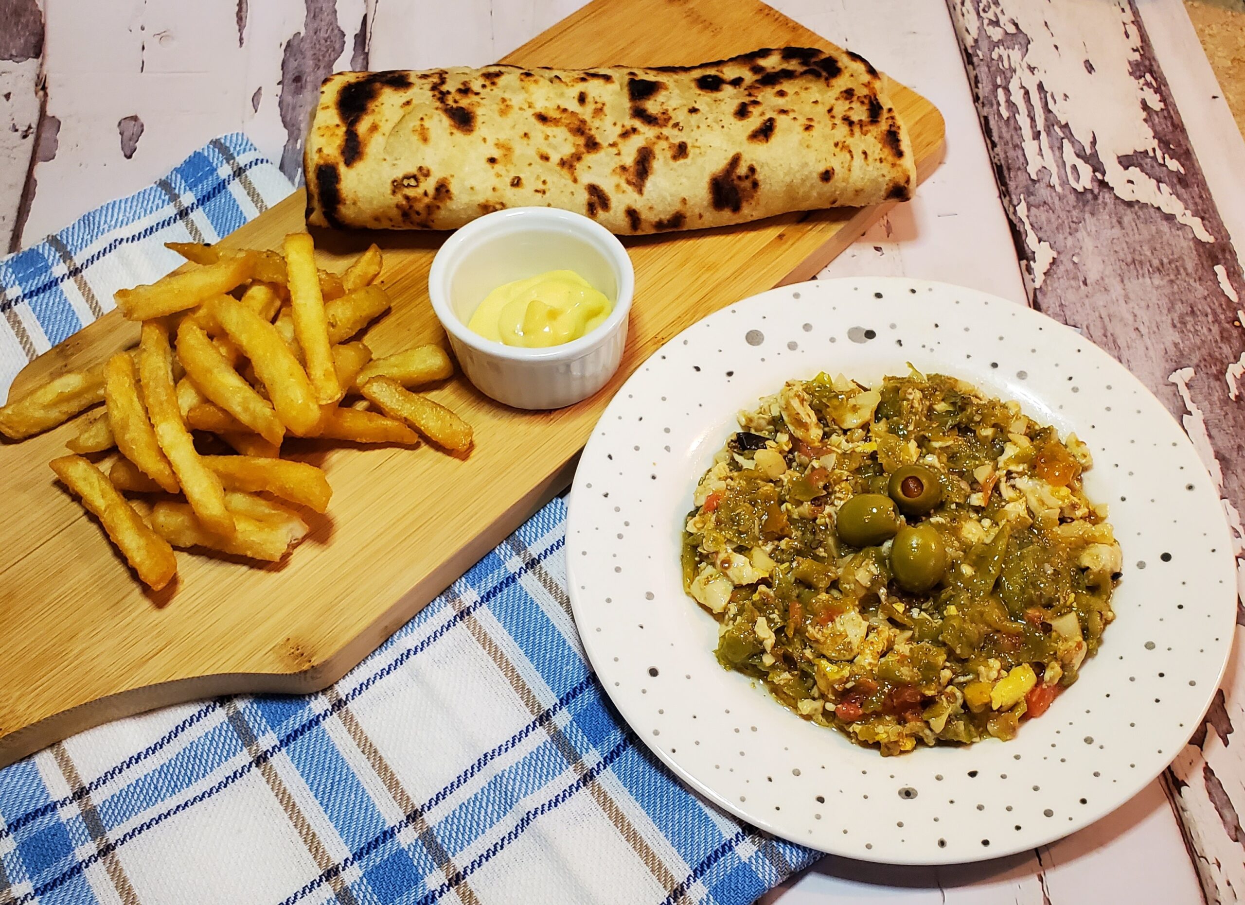 Kafteji avec frites et pain msammen (Regueg) ,kafteji avec frites |