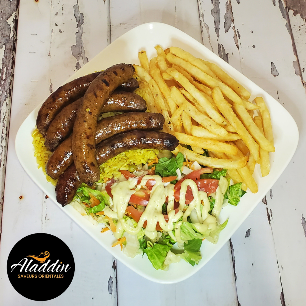 Étiquettes : aladdin, assiette, cuisine traditionnelle, fait maison, Merguez, plat