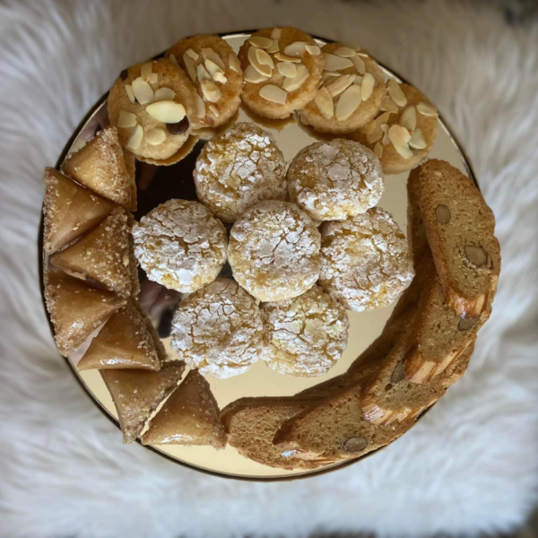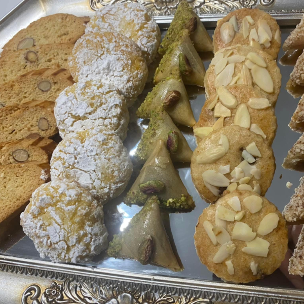FEKKAS fruits secs, riche bonds noix de coco et citron, Halwet louz amande, kaab gzelle, behla aux sésame et amande, sablé aux raisins secs, ghrayba aux amandes