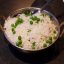 Riz basmati et pois verts frits dans le ghee (beurre clarifié) avec épices et oignon frit.