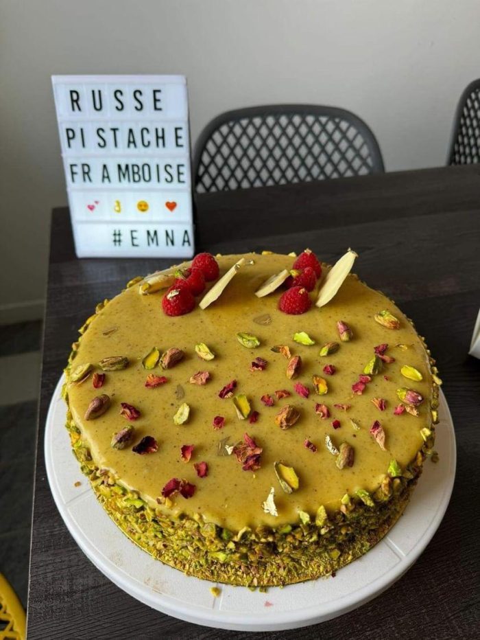 Une des recettes les plus délicieuses, qui marie une dacquoise moelleuse fine et une délicieuse crème aux pistaches avec un insert framboise.