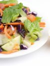 Salade avec tranches de poulet tikka, laitue fraîche, tomate, concombre et piment vert dans une vinaigrette maison.
