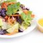 Laitue fraîche, tranches de tomate, concombre et piment vert dans une vinaigrette maison.