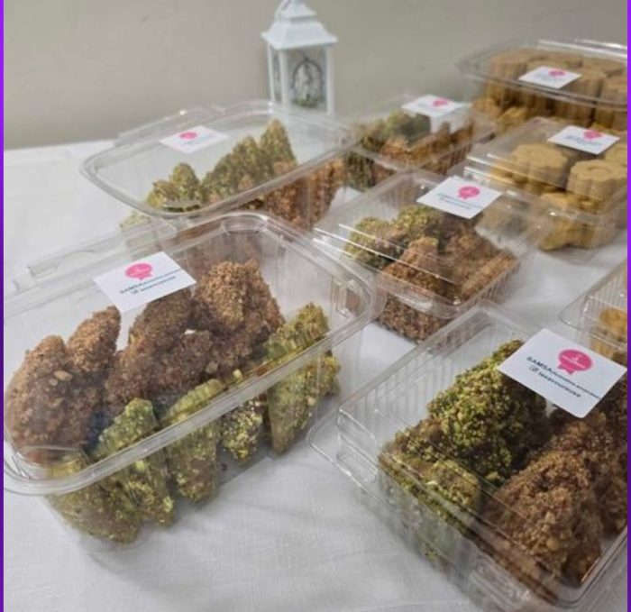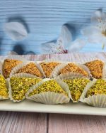 Faite avec d’amande et Noisette, parfumé avec de l’eau de rose enrobé dans des feuilles phyllo croustillante, cuite au four et trempé dans le miel.