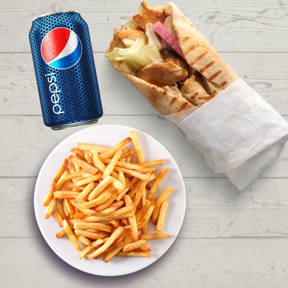 Sandwich pita au choix avec frites et boisson