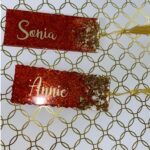 Signet personnalisé en résine (avec paillette et feuille d’or) : dimensions 12,5 cm *5 cm
