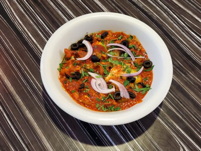 L’ojja Tunisienne est un plat tunisien convivial, composé des oeufs, oignon, harissa, tomates et fuits de mer.