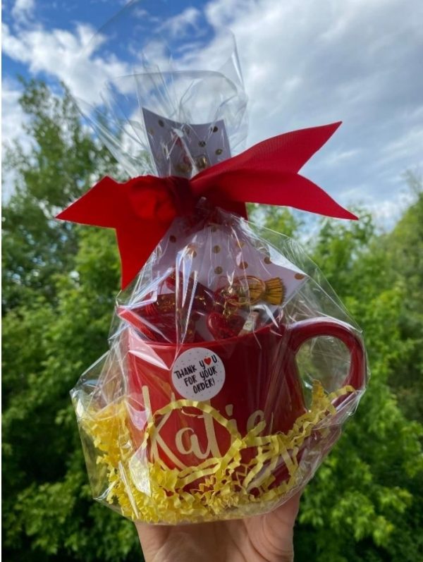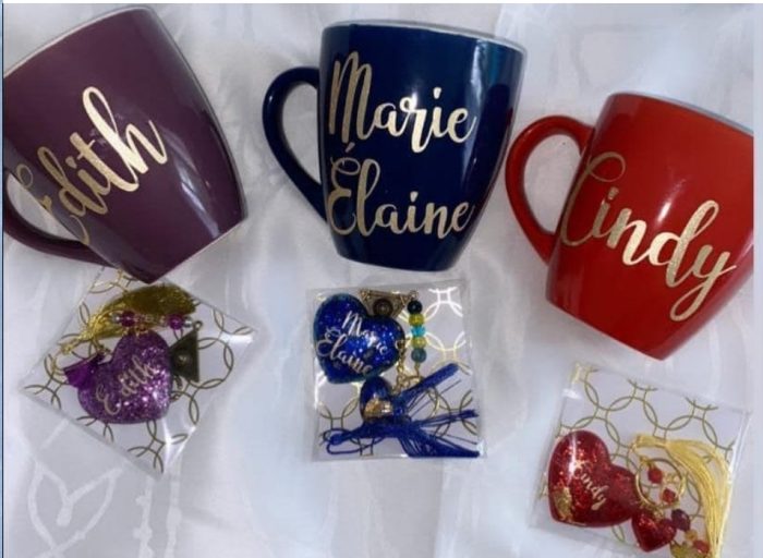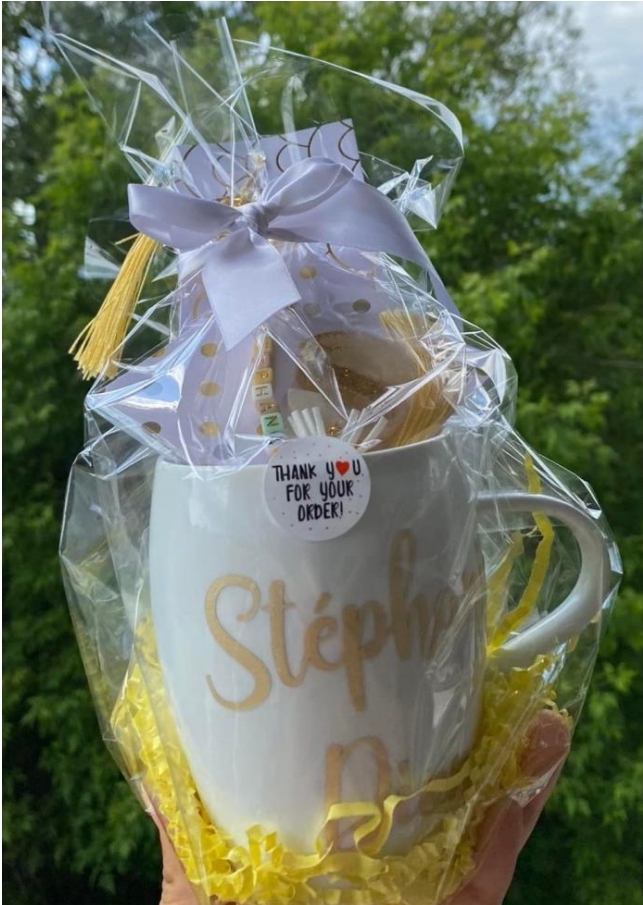 Tasse personnalisée vient avec 4 chocolats dedans et emballage inclus