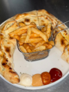 Ingrédients: fromage, sauce, tomates et légumes frais, frites et avec votre choix de viande
