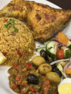 Tête d’agneau Grillé Halal servi avec riz, salade et frites
