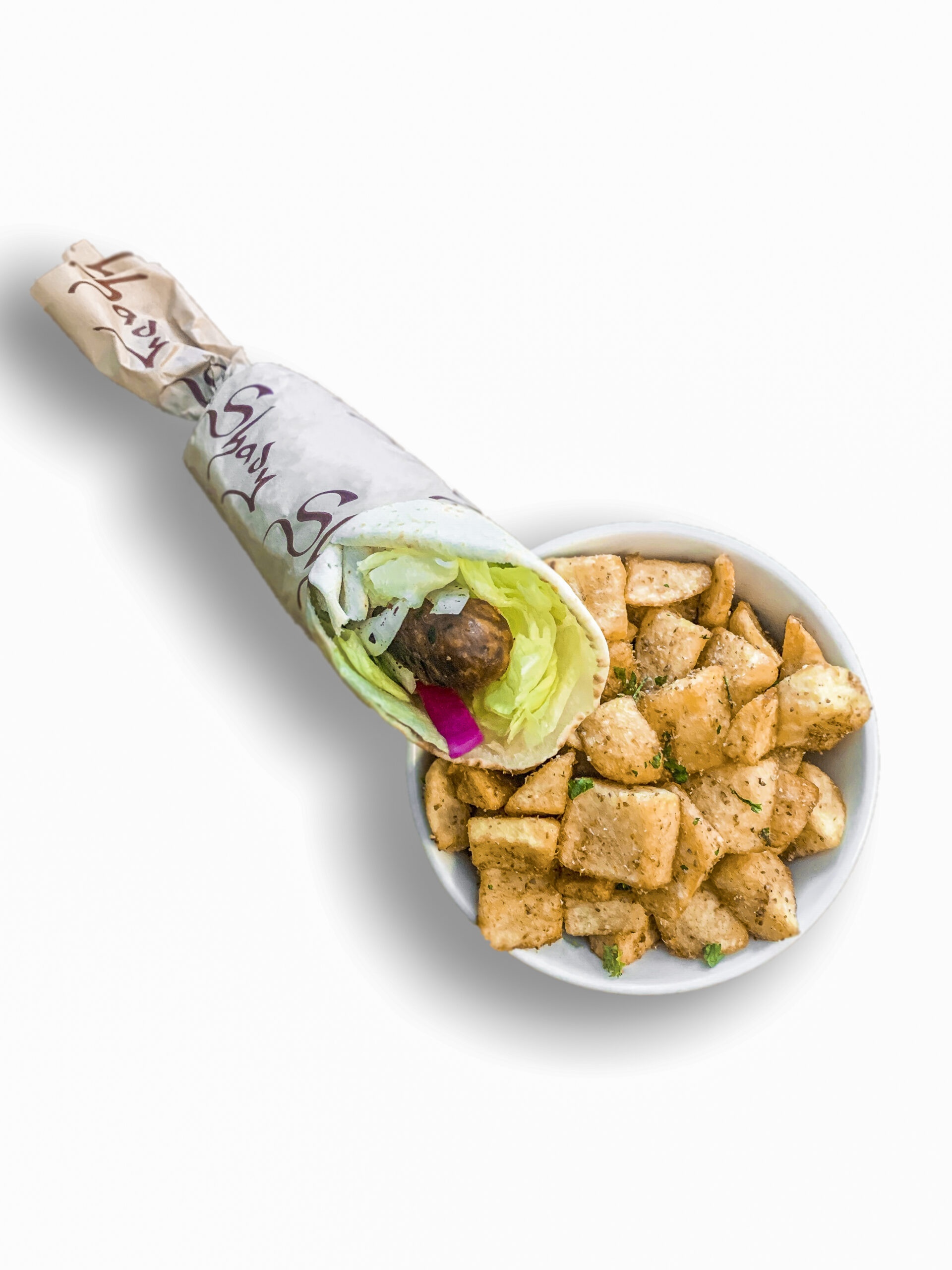 Étiquettes : breuvage, Cuisine libanaise, Merguez, patate, pita, shady