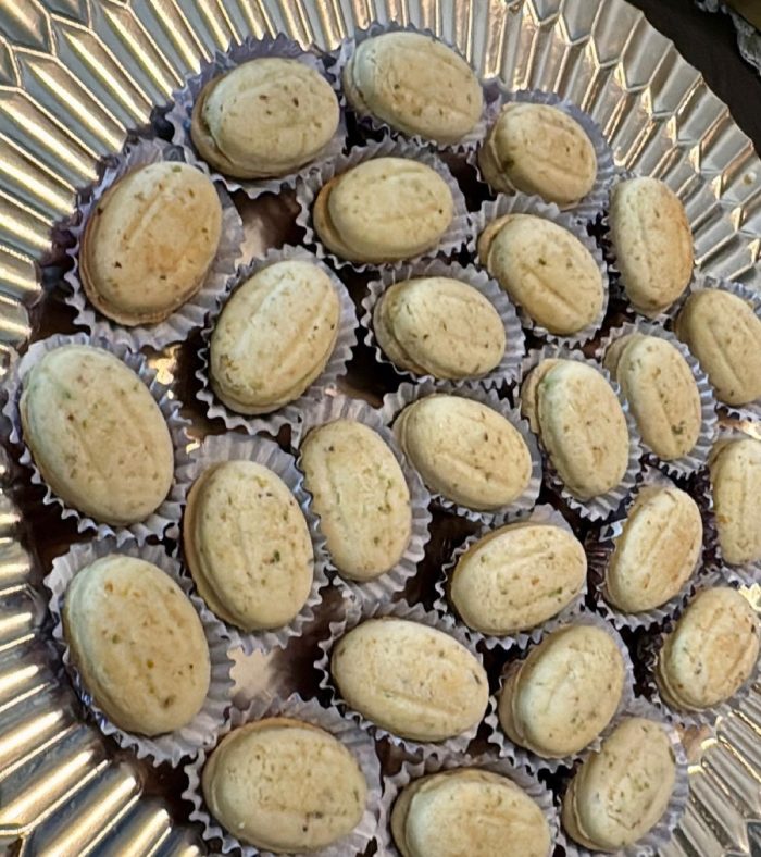 Zouza, est un biscuit tunisien, un délice à la forme d’une noix avec deux coques que l’on rempli avec de caramel, praliné noisette ou praliné pistache.