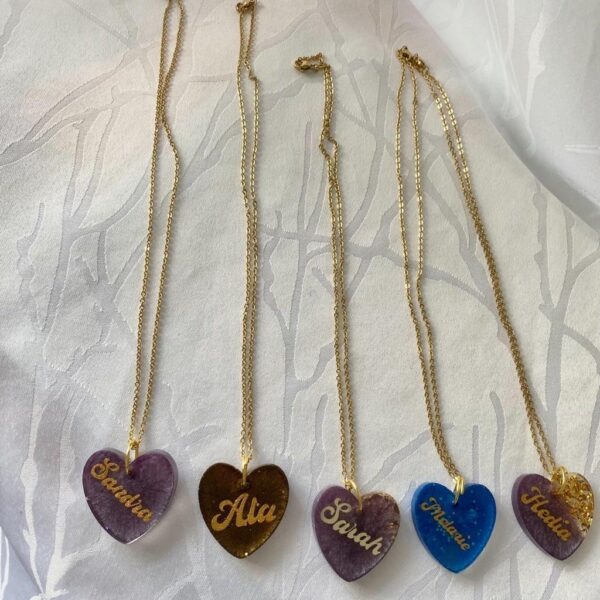 Tableau personnalisÉ en rÉsine avec pierres de verre et avec support ou avec chaines dorÉ en acier inoxydable .