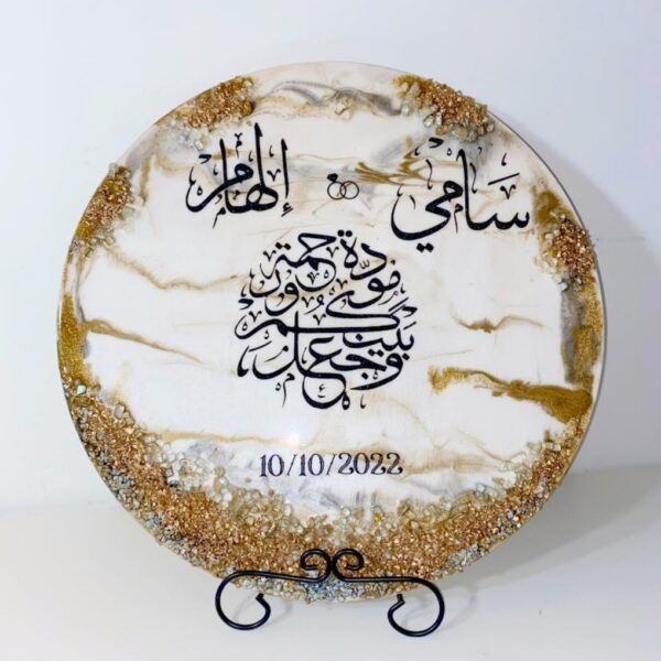 Tableau personnalisé en résine avec pierres de verre (avec support ou avec chaines doré en acier inoxydable)